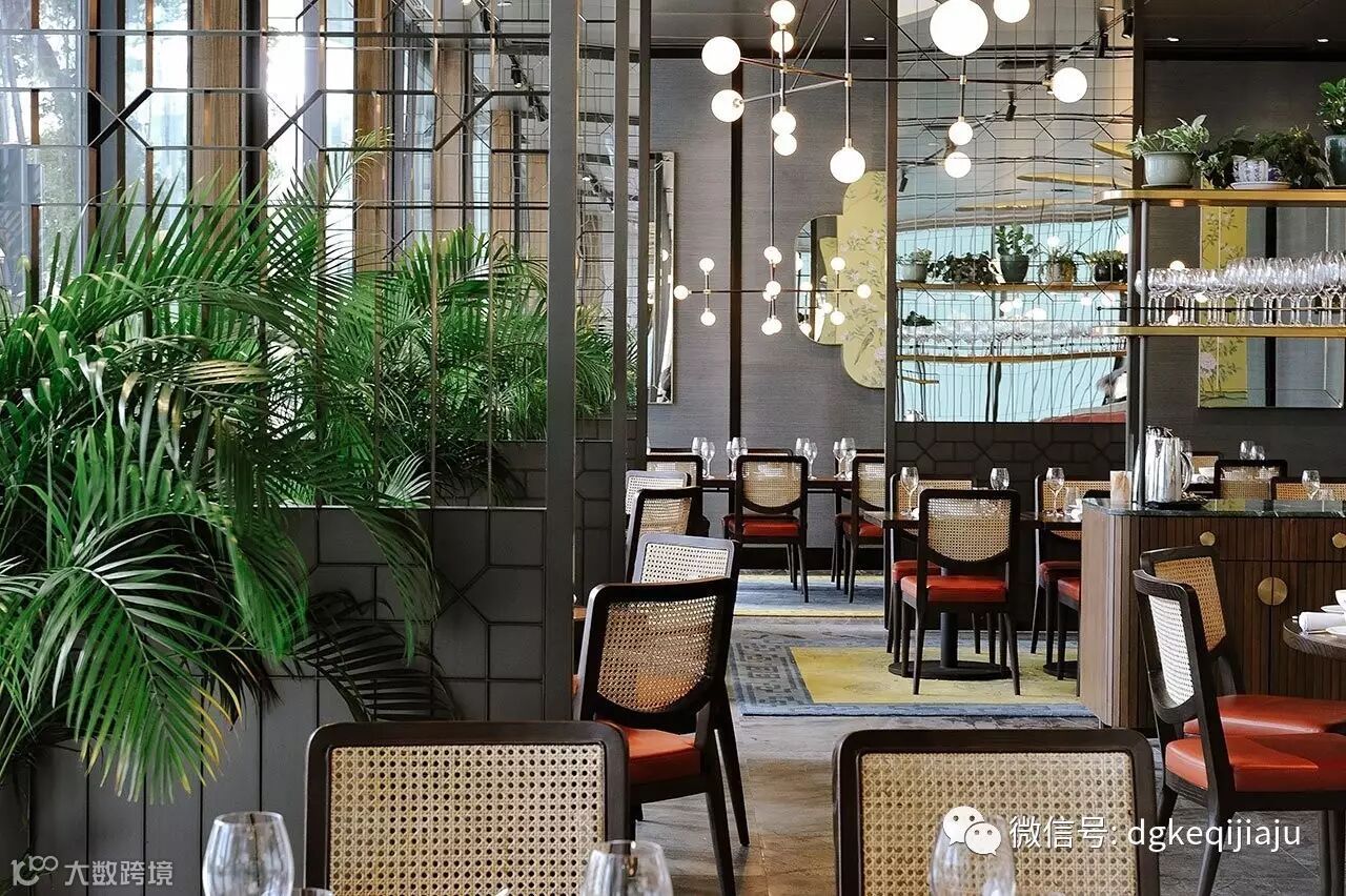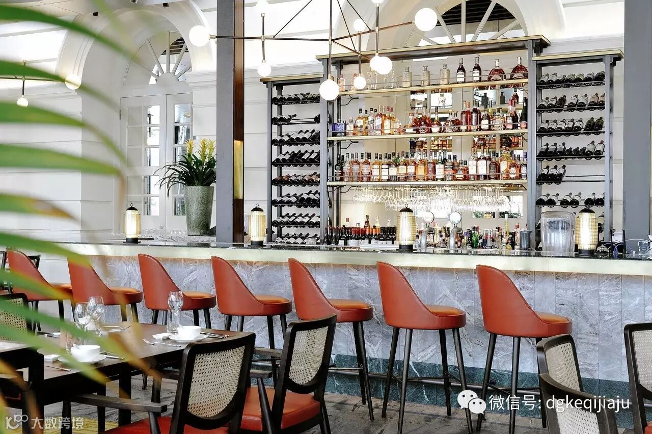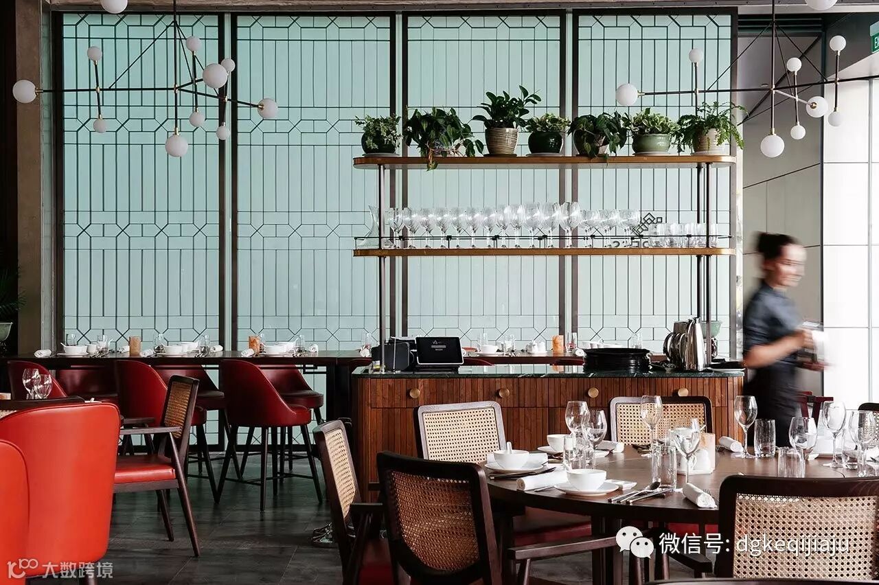 设计师考虑到餐厅特殊的地理位置:一侧靠近新加坡河,一侧靠近博物馆,也因此设置了两个入口。