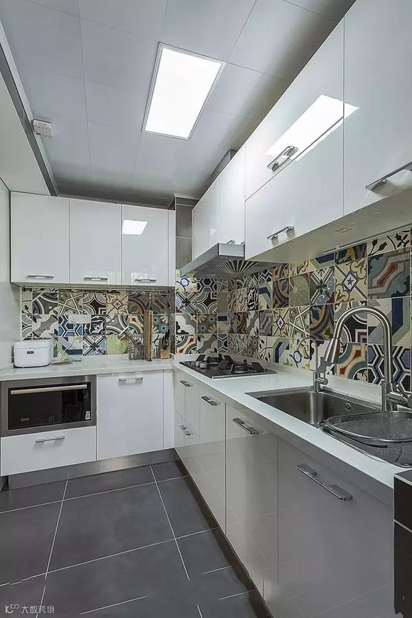 这是一款简约风小户型装修案例。装修设计色彩搭配明艳,风格采用的是北欧风格和简约风格混搭,个性仿古砖和厨房彩色拼接图案展示出这款装修设计是多么的富含感情和热情。