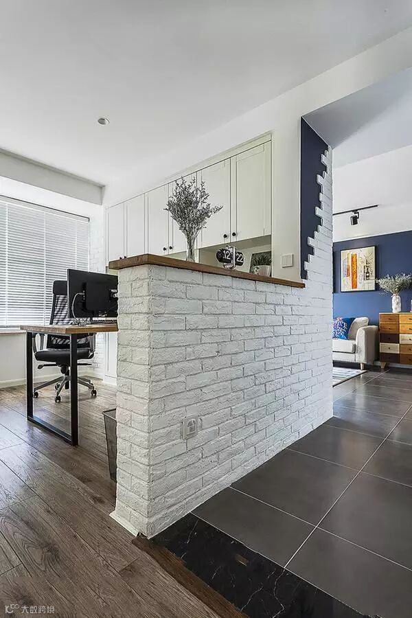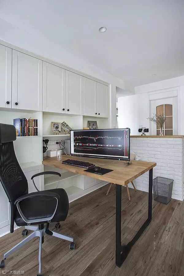 半墙隔断书房,简洁干练。顶柜增加书房的存储功能。