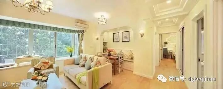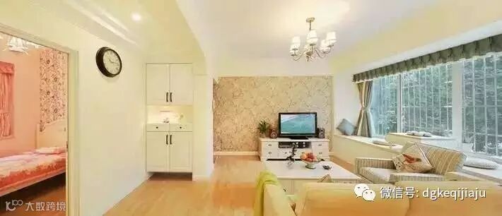 推开门即可见客厅窗外绿油油一片,