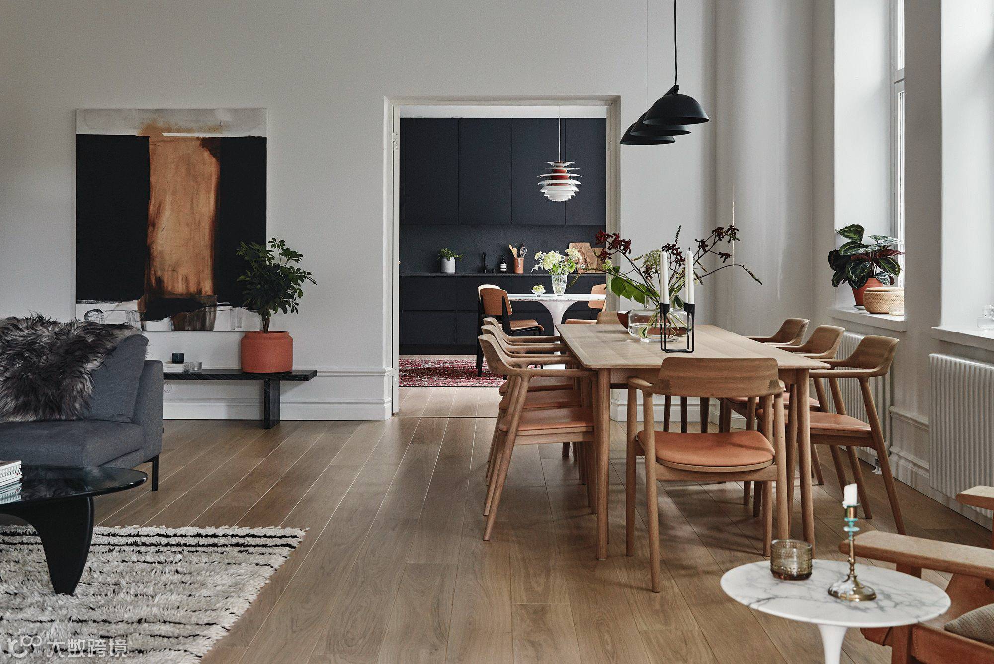 配上咖啡色调的装饰画和饰品