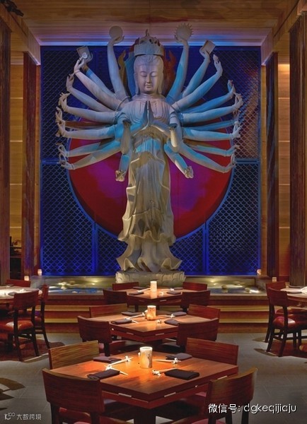 东莞珂琦家具知名建筑公司洛式集团于2013年底完成了这个奢侈豪华的餐厅,位于纽约市中心,是当地的第二家TAO餐厅。设计以东方元素为核心,色调采用古老高贵的绛红色,将楼梯设在用餐区的中心,醒目张扬,匠心独运的借鉴了中国古代的宫殿元素,对称的楼梯通往“至高无上”。石像、褪色的书法、烛台皆营造出佛教氛围,神秘祥和。餐厅的细节精雕细琢,照明灯具、墙壁天花无不有百般变化,令人如痴如醉。