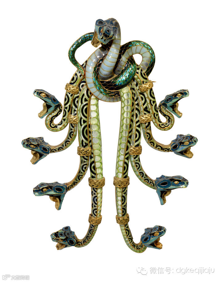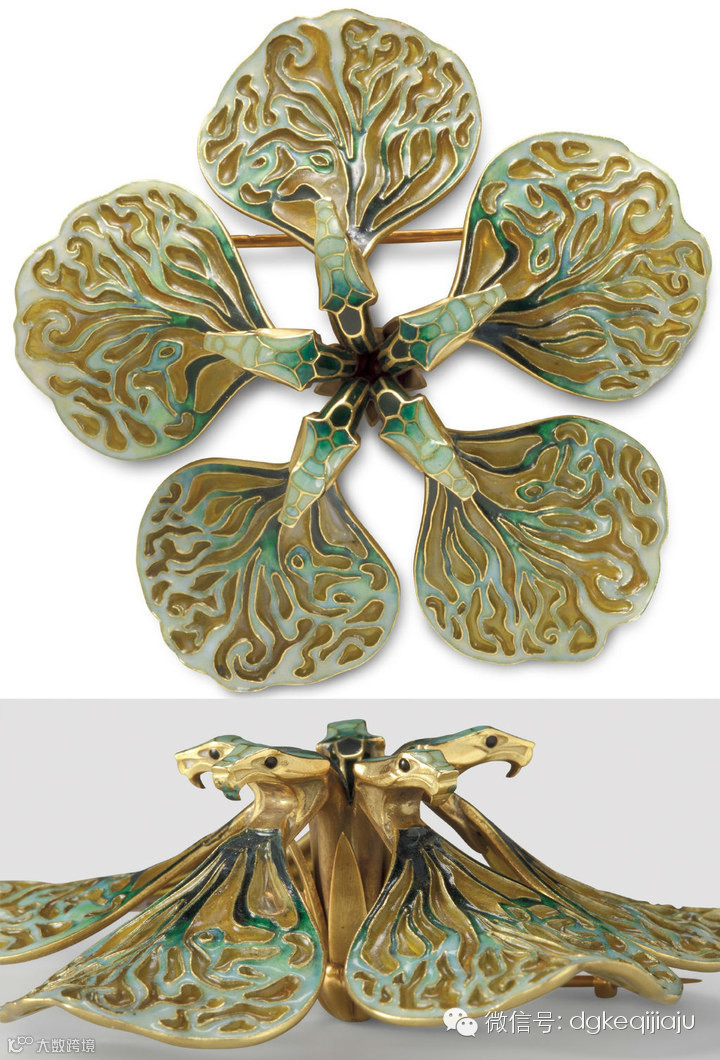 拉利克设计的“毒蛇花”胸针。正面看是一朵花,侧面看每个花瓣都是蛇头衔着的。
