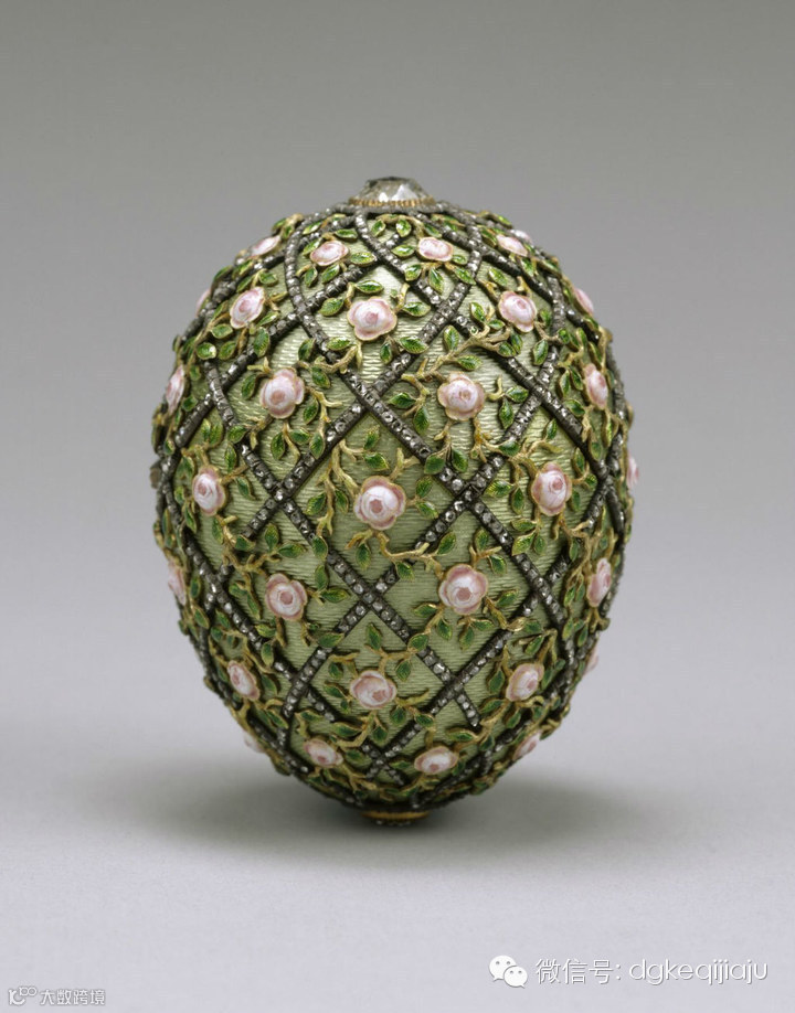《玫瑰交织》——法贝热彩蛋。 1907年4月22日,沙皇尼古拉二世送给他的妻子亚历山德拉皇后这枚彩蛋,庆祝皇储阿列克谢·尼古拉耶维奇·罗曼诺夫的三岁生日。由于日俄战争在皇储出 生当年爆发,皇室两年没有做新的法贝热彩蛋了。蛋里是一个钻石项链,还有一个钻石框的皇储象牙像——皇储阿列克谢刚出生不久就被发现患有血友病,因为皇后 亚历山德拉是血友病之母维多利亚女王的外孙女。(伴X隐形遗传) 1918年,沙俄灭亡,尼古拉二世全家遭布尔什维克军队(即后来的苏共)屠杀,包括年仅14岁的阿列克...