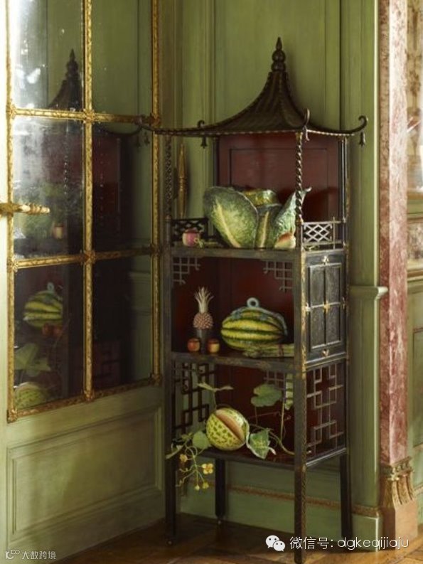 chinoiserie,是法文单词,意为“中国的”,这个词汇在18世纪中期被吸纳到英语中,指当时非常流行的一种装饰艺术风格“中国风”。