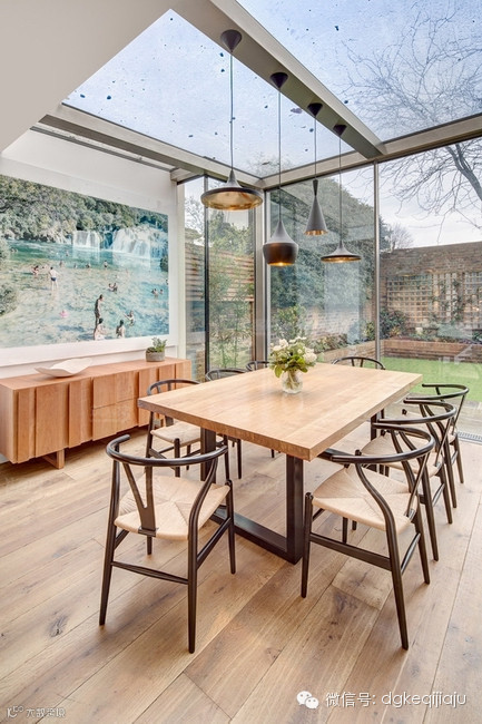 东莞珂琦家具设计重心集中在地面一层,为了吸引更多的自然光线,入口搭建了一个不锈钢架构的玻璃屋,将餐厅设在这里,使一家人用餐时都能有呼吸新鲜空气以及视野开阔的愉悦感。室内设计保留了一部分传统的维多利亚式元素,而绝大部分家具都选择了简洁节约空间的北欧系列,清新自然感扑面而来。
