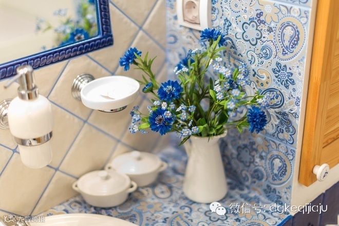 ,甜美的色彩,古朴的砖墙,如梦似幻。碎花窗帘与瓷砖让你仿佛置身花的海洋,吐露淡雅芬芳。