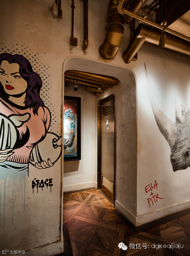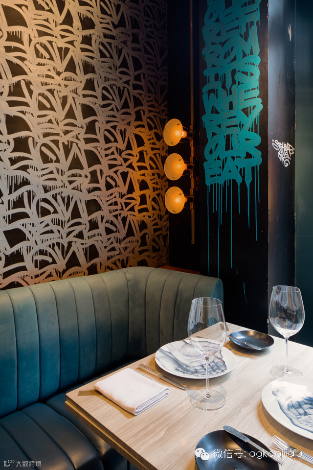 BiBO 是一家位于香港上环的法国菜餐厅,店铺装潢由设计公司 SUNBSTANCE 完成。与大多数法式餐厅不同,BiBO 店内充满了街头元素。餐厅分为大堂、吧台、卡座和书吧四个区域,但无论哪个区域都能看见抢眼的涂鸦,与欧式风格的家具形成了鲜明对比。设计师甚至将这种风格延续到了餐厅名片和菜单的设计中,餐厅的 logo 被印到了显眼的位置,看起来非常特别。