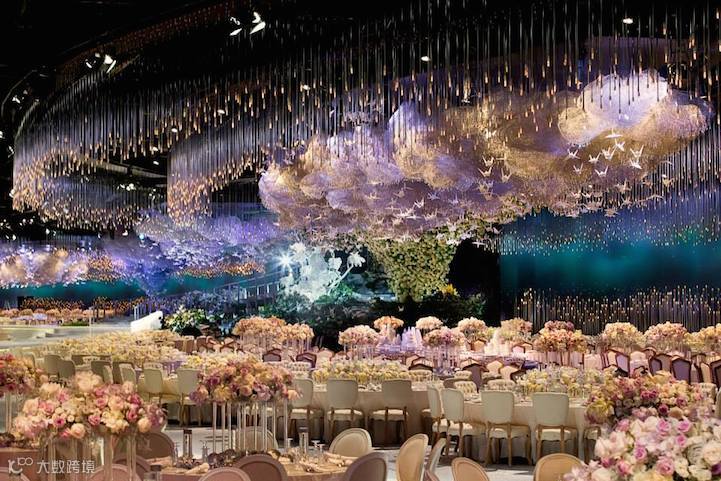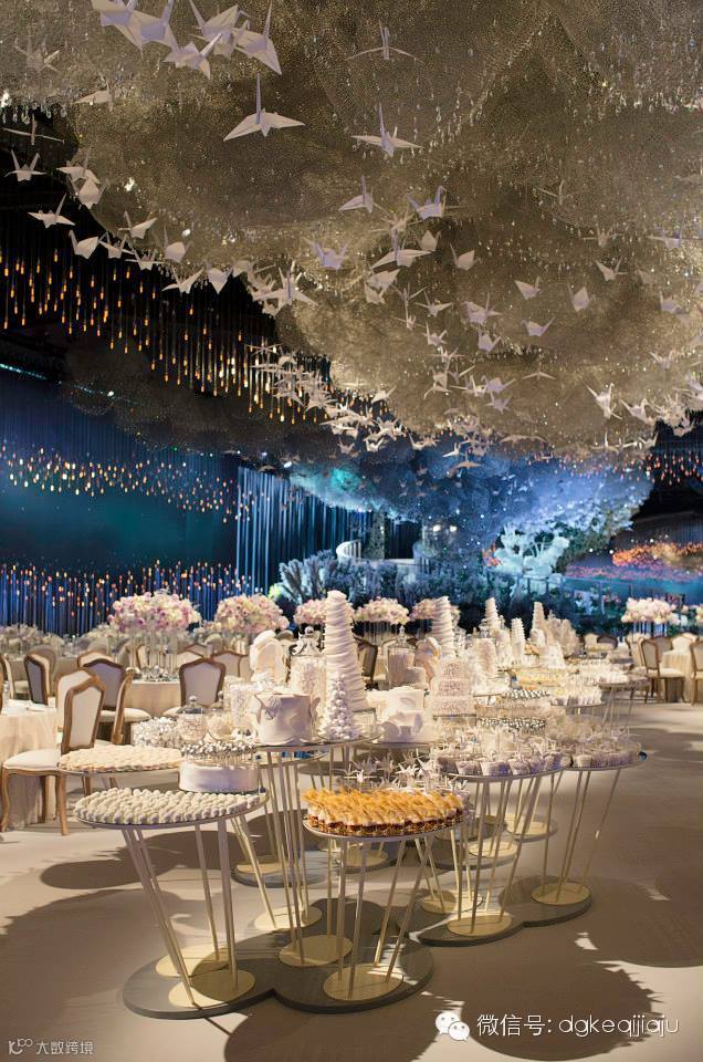 迪拜土豪的婚礼,既是新娘又是婚礼设计师的Sheika Lateefa根据自己的喜好为自己打造了一个梦幻婚礼。她用1500个小吊灯,6500颗施华洛世奇水晶,还有4000个千纸鹤来装饰婚礼现场。