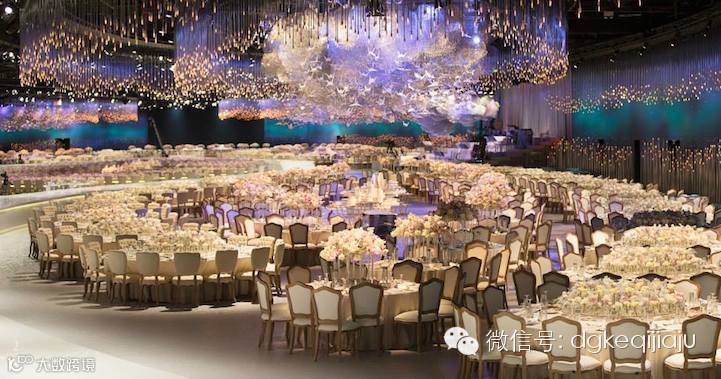 东莞珂琦家具迪拜土豪的婚礼,既是新娘又是婚礼设计师的Sheika Lateefa根据自己的喜好为自己打造了一个梦幻婚礼。她用1500个小吊灯,6500颗施华洛世奇水晶,还有4000个千纸鹤来装饰婚礼现场。