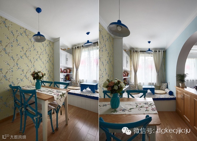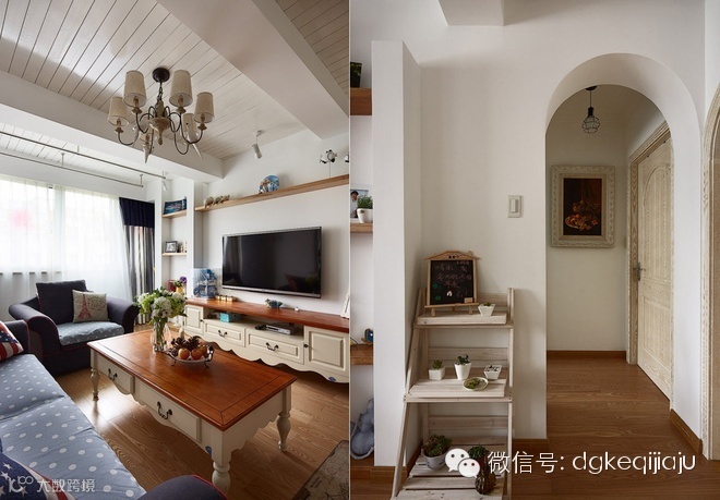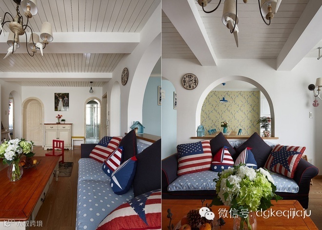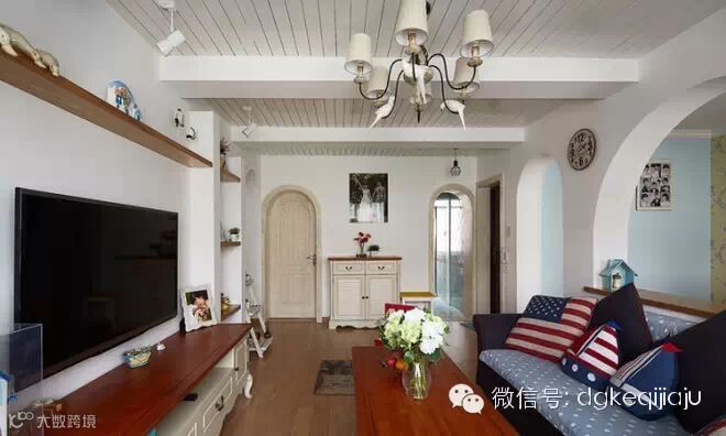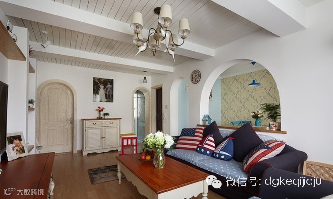 东莞珂琦家具90平三室一厅地中海雅居随意轻松的大海味道,文艺复兴前的西欧,家具艺术经过浩劫与长时期的萧条后,在9至11世纪又重新兴起,并形成独特的风格——地中海式风格。地中海风格家具以其极具亲和力田园风情及柔和色调和组合搭配上的大气很快被地中海以外的大区域人群所接受。物产丰饶、长海岸线、建筑风格的多样化、日照强烈形成的风土人文,这些因素使得地中海具有自由奔放、色彩多样明亮的特点。