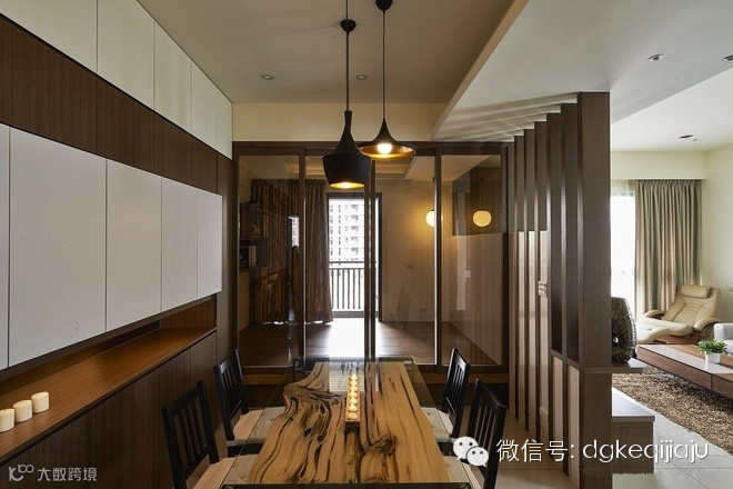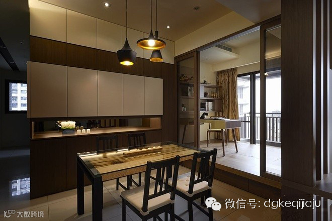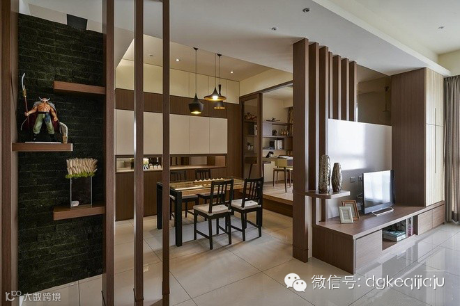 东莞珂琦家具124平日式禪风雅居塑造品味温馨的全新生活,设计师与业主经过沟通了解,将其收藏及喜爱的风格做空间的重整融合,以专属的空间意象,承袭生活的重心所在。玄关引用日式〝竹〞的意象做设计语彙的发想,格栅式的柜体门扉设计与间接光源的明暗层次,同时作为客、餐厅间开放的中介因子,而渐进式的区域发展,将空间的大方气势完全表态,而其间日式沉稳内敛的氛围,由此蔓延开来…