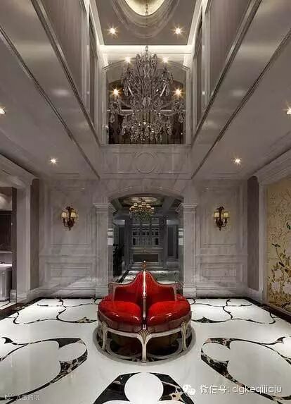 这是另外一栋颇有法式特色的别墅豪宅,优雅法式风情的住宅中,这万千素雅格调中的一点殷红,让整个空间给人留下了无法磨灭的印象。很多设计师的作品流于平庸的原因,是因为没有自己的符号,没有打上自己的烙印,而陈伟用自己色彩冒险家的情愫,把他的每一套作品都深深地打上了“陈伟”的烙印