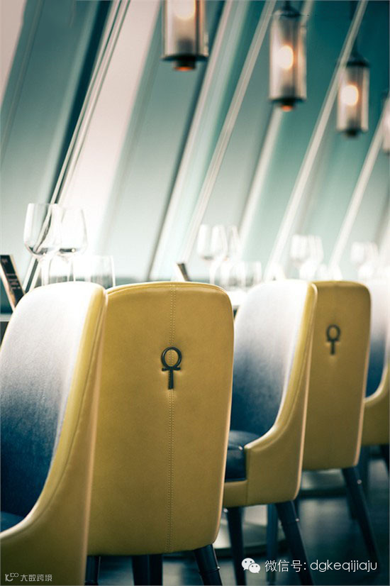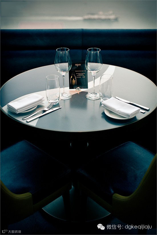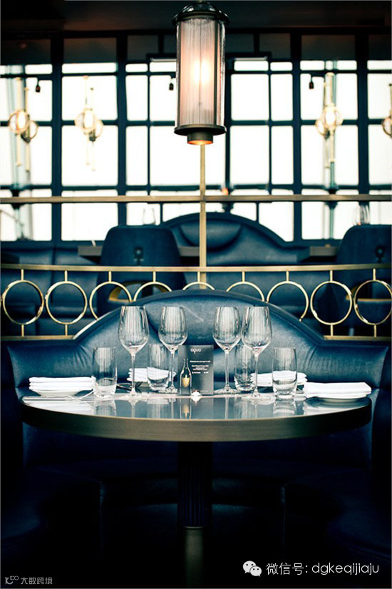 David Yeo “aqua的全新设计流露出David Collins 的典型特色,其独特的古典与优雅感,为空间赋予永恒不朽的奢华格调。以家具设计为例,沙发及椅子上的蓝色皮革全于意大利订造,精心挑选的皮革在染成蓝色后,再压花后印染上金属色,营造出略带金属质感、耀眼夺目的效果