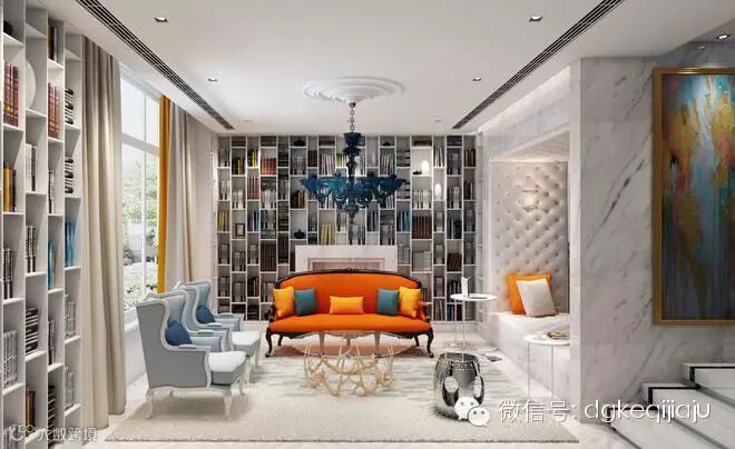 别墅整个客厅里充斥着各种色彩的暖色调,将女人细腻的心思表露无遗:亮眼的橙黄沙发与传统正规的沙发相比,消除了棱角对视觉的冲击,增加了空间流畅感的同时,更突显出女子的优雅和柔美,将古典复古的小情趣变得摩登时尚。