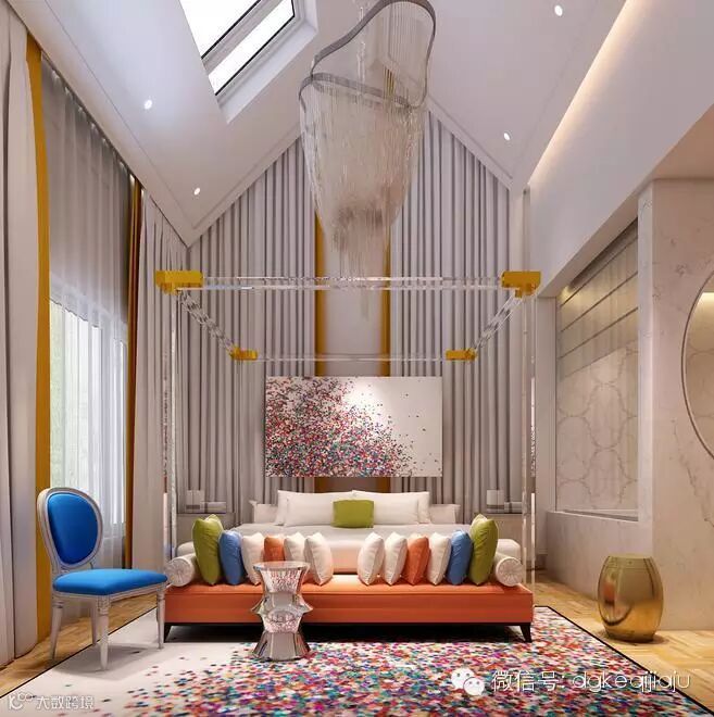 当卧室充满了颜色,女人一定会变得可爱起来,还原了娇媚的形象,心情也变得舒适愉悦,一日三餐、每句问候都会染上幸福的色彩。即便只是在局部装饰中加以运用,也能使整个家居氛围变得甜美起来。纯白色的窗纱也能够为居室营造出甜蜜气氛,使工作一天的人们彻底放松下来。另外,稍冷的绿色蓝色也可在卧室中与之搭配,表现出春天的稚嫩新鲜