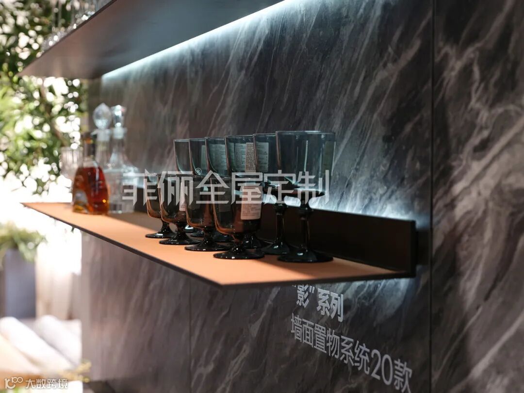 “影”系列墙面置物系统,其集成的LED照明系统,塑造出令人瞩目的光影效果,两者配合密切,相辅相成。