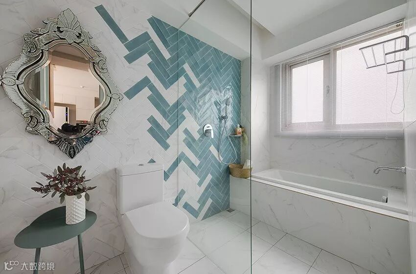 浴室的设计实在太有艺术气息,不得不特别提一下。此外,干湿分离设计也值得参考。想要优雅地上厕所,一定要干湿分离!中年少女请把这句话写在手账第一页!
