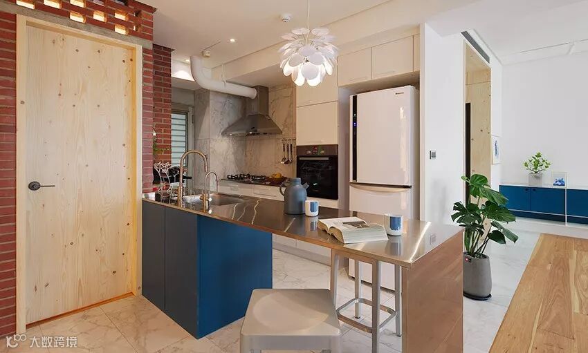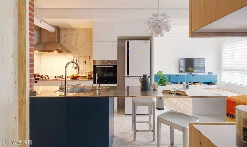 一个人的家,功能空间的作用被消解,餐厅不必有餐桌,一个大岛台代替所有,备餐、吃饭、工作、休闲四不误。做自由自在的知性girl,大岛台实在太有用啦。