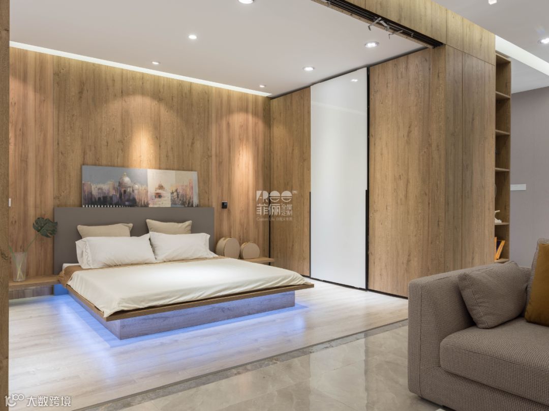 现代风格融合了木质和石材色彩的运用柔和而宁静,整体又有规划,中和了空间的冷冰冰,体现了业主对品质的追求又保留了家的最本质的温馨感,让业主感受到舒适和自由。