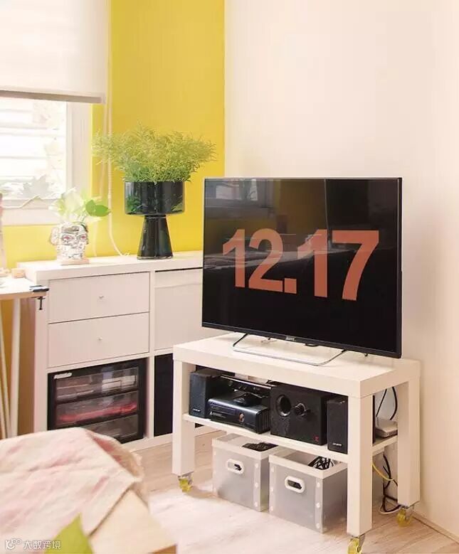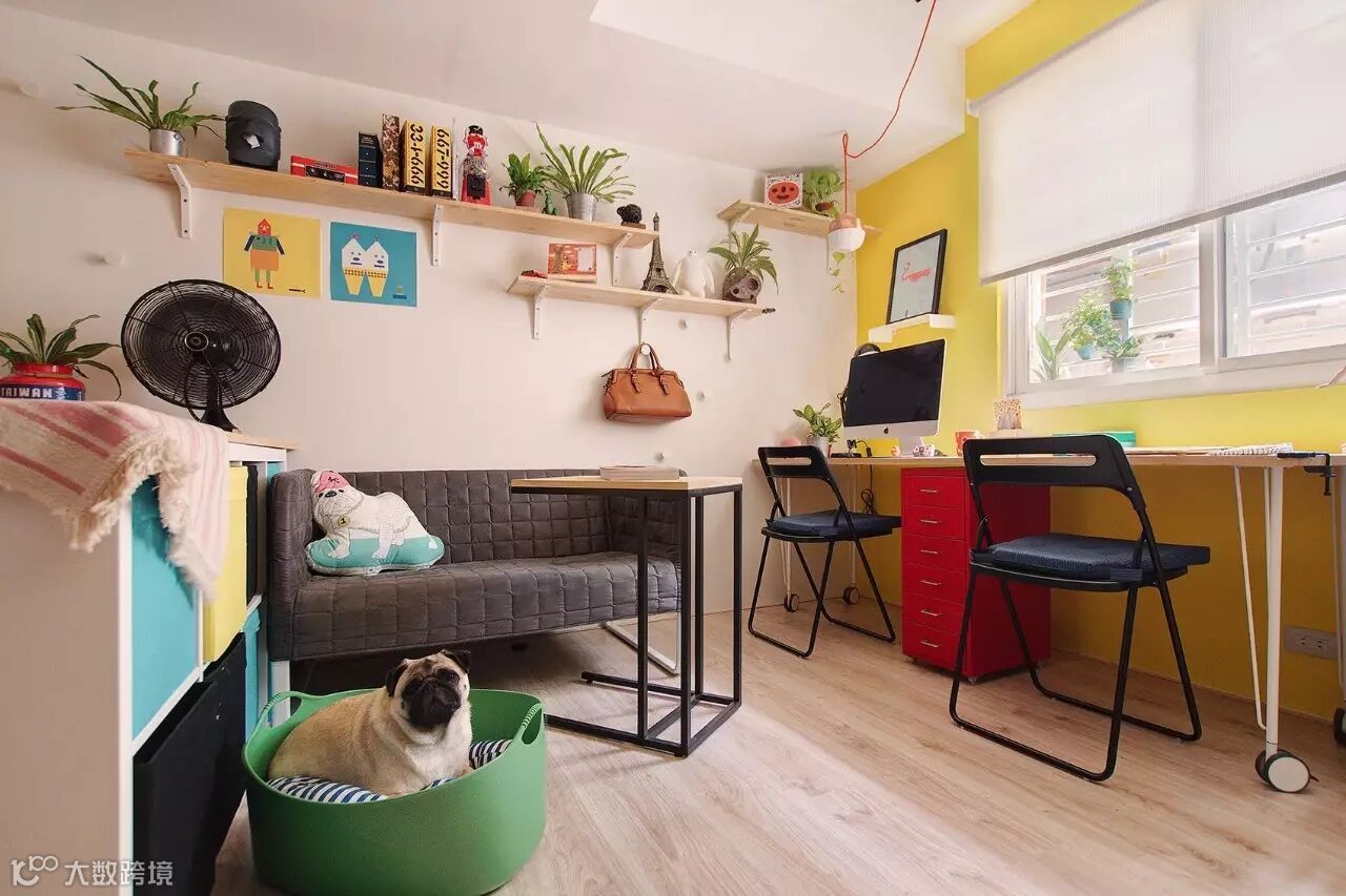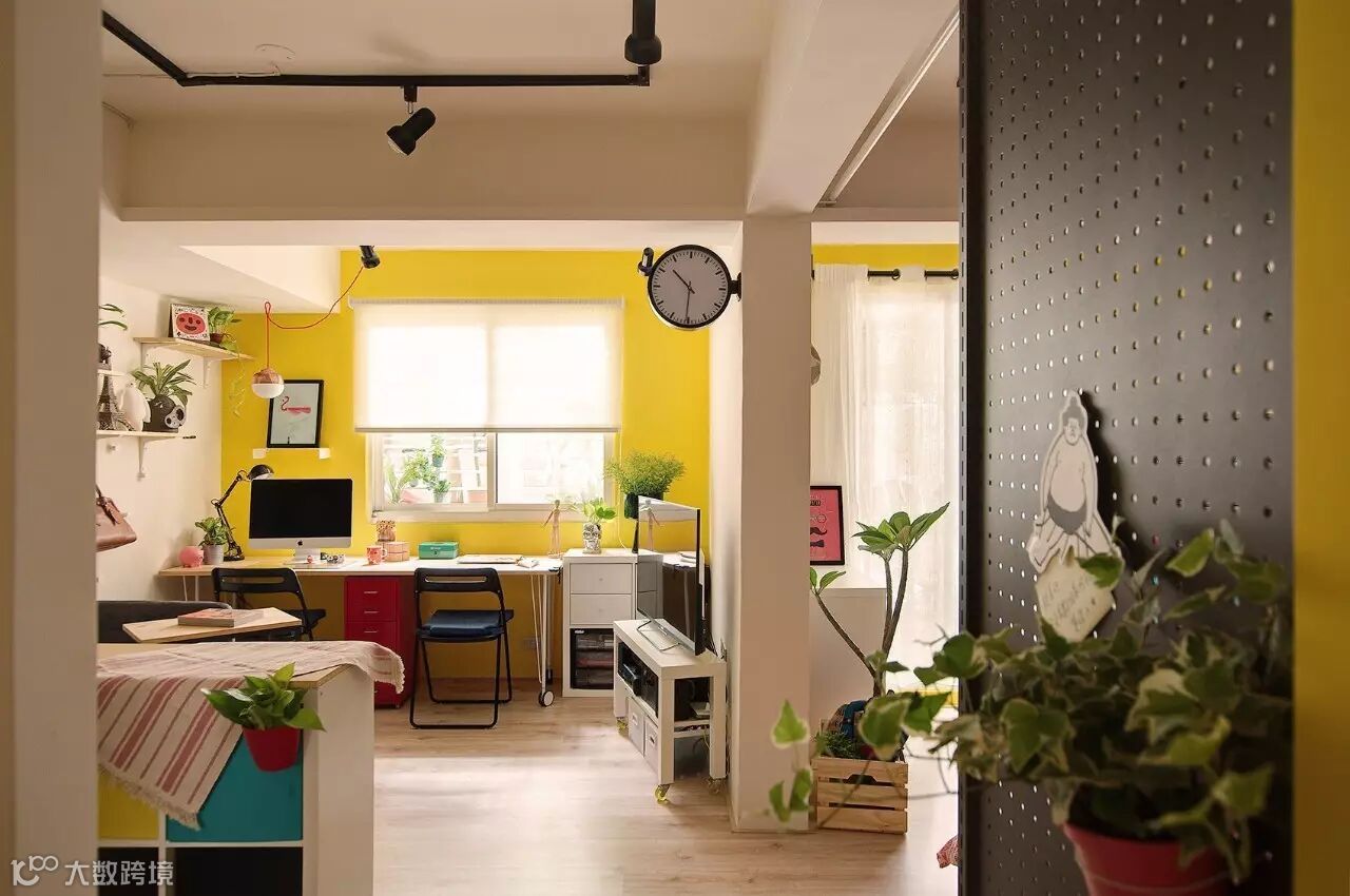▼高彩度跳跃配色,结合清爽绿植,让小空间摆脱幽暗,让阳光和好心情一起充盈整个空间。