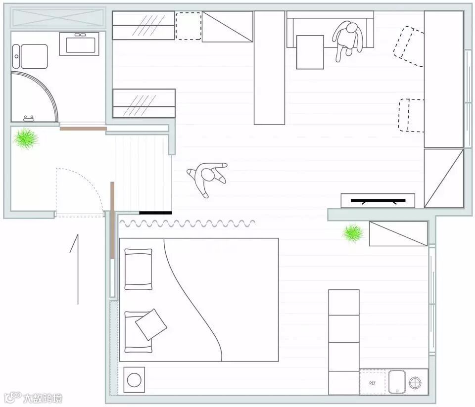 在许多的解决办法中,一个高效又实惠的方法是:用家具做隔断!——保留必要分区,又同时有视野开阔的通透大空间相伴。