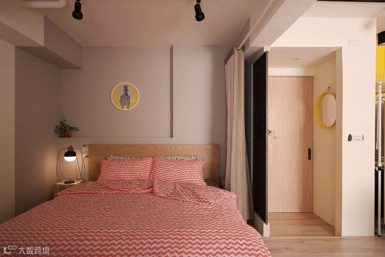 ▼遮光帘不仅隔离光线,也把私密空间和公共起居空间分隔开来。