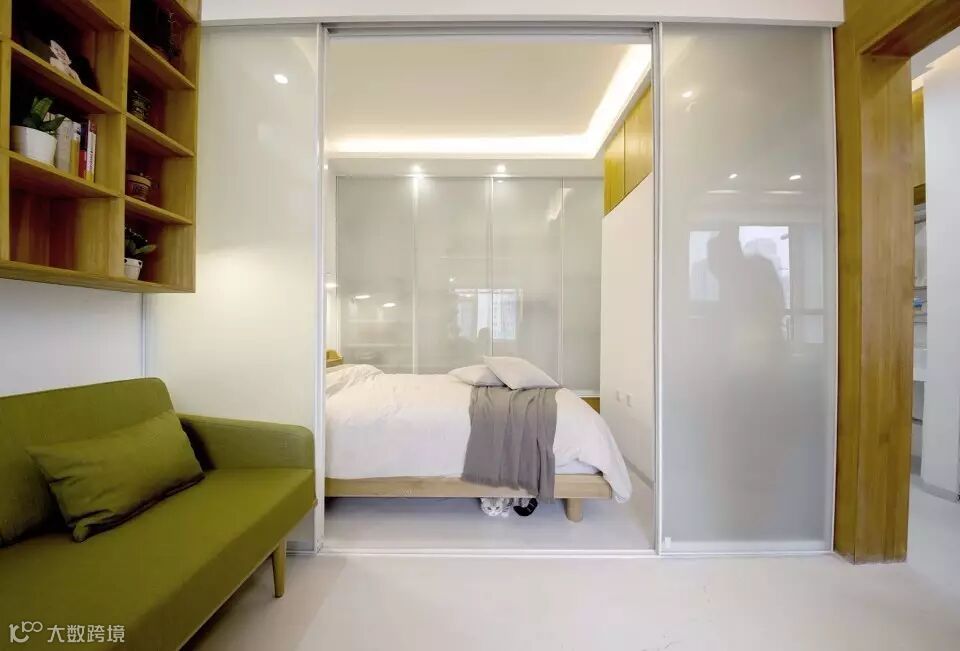 ►►为保持卧室的通透感,而选择了半透明分隔设计。