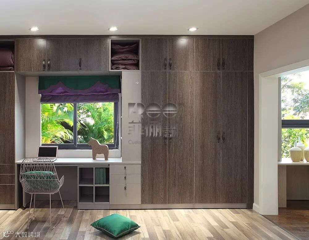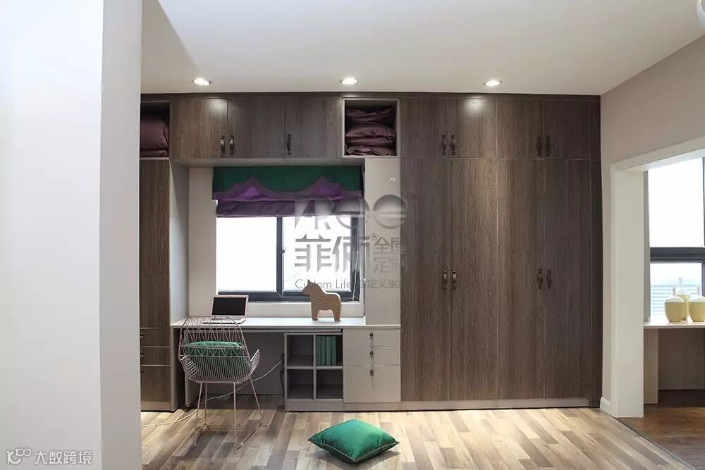 菲俪延伸到顶的组合衣柜定制,拥有完整、巧妙的功能分区,为空间变身预留了充足的收纳空间。