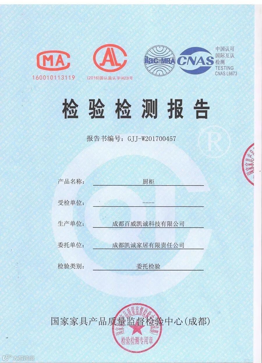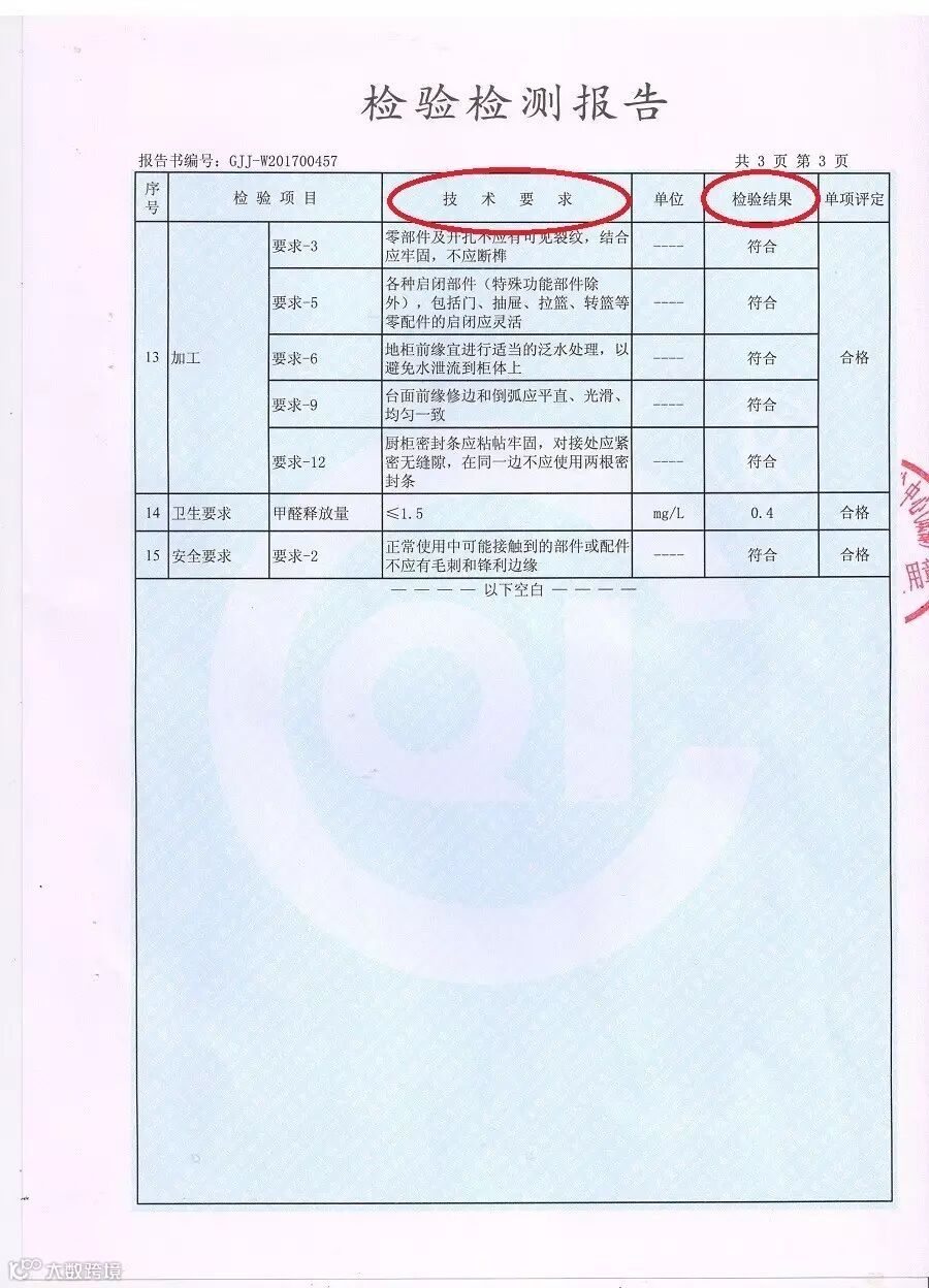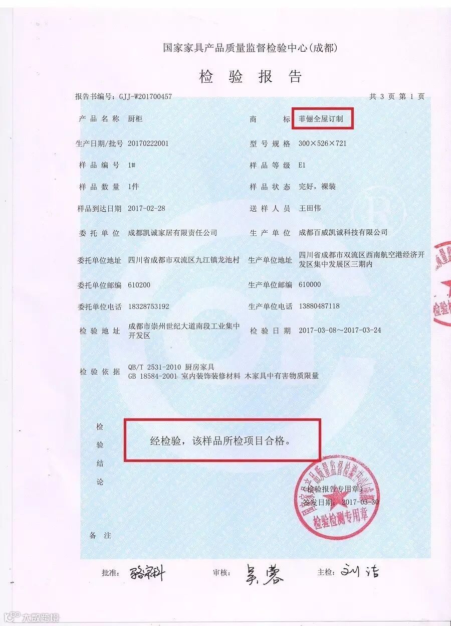2017年3月,菲俪全屋定制抽样送检,全部符合国家标准。