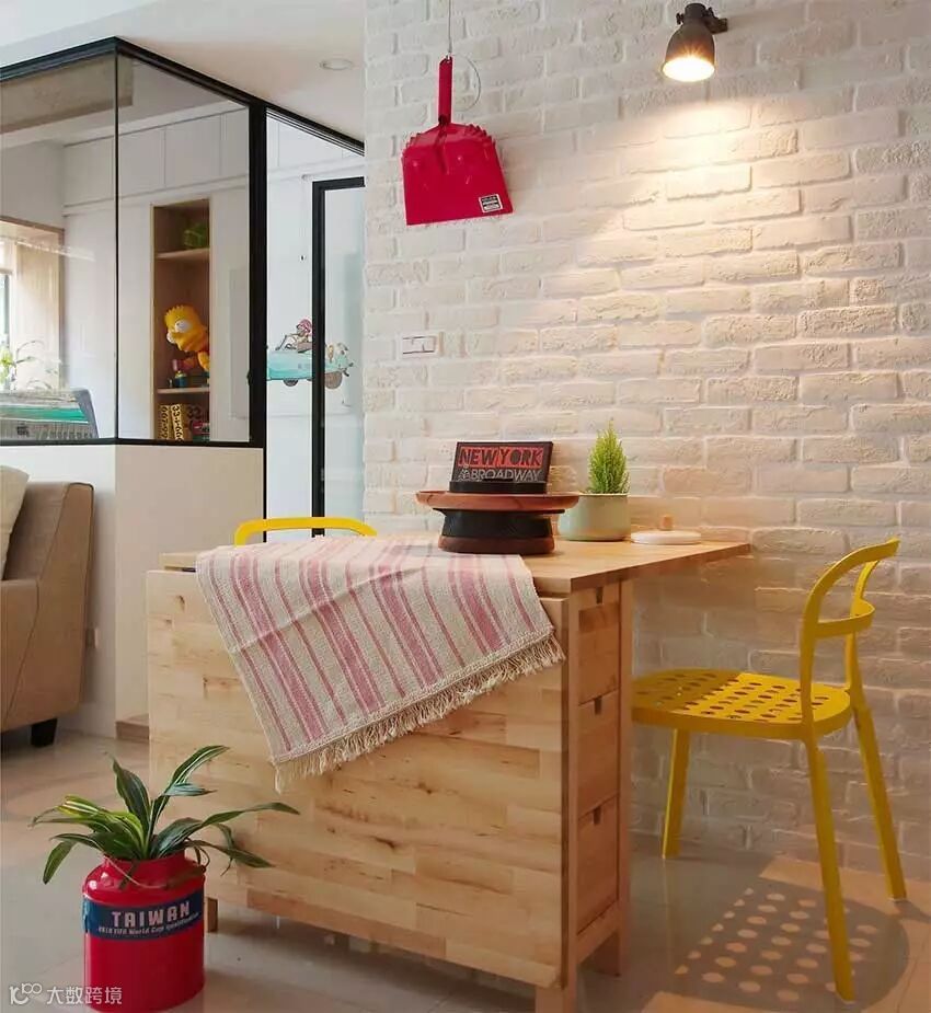 ▽折叠餐桌,平时两人够用,亲友光临打开另一半即可,为空间提供更多可能性。