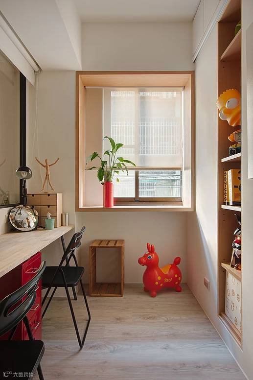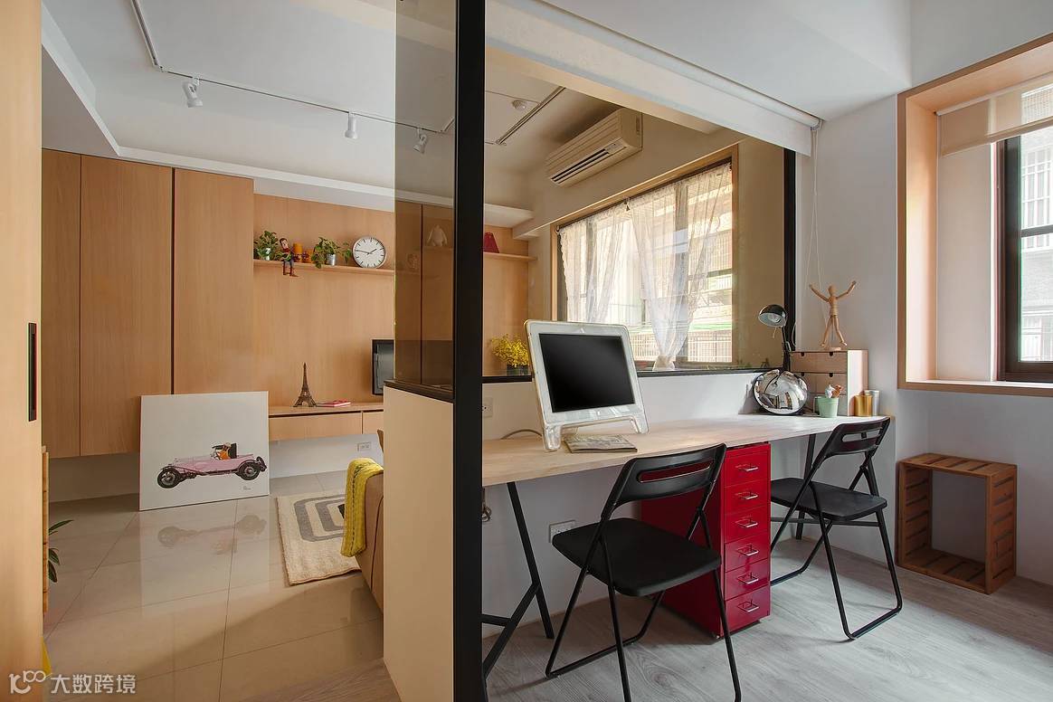 ▽书房用茶色玻璃代替实墙,让光线串流,让小空间在视觉上的更通透,放大空间感。