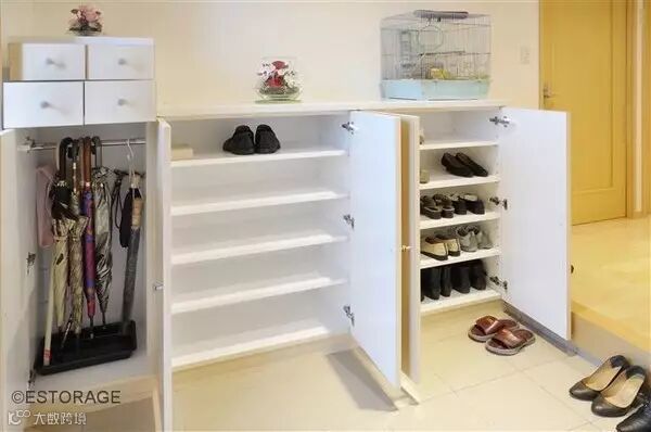 ►简单矮柜设计不算少见,基本是单纯鞋柜的设计,其上便于收放、展示。