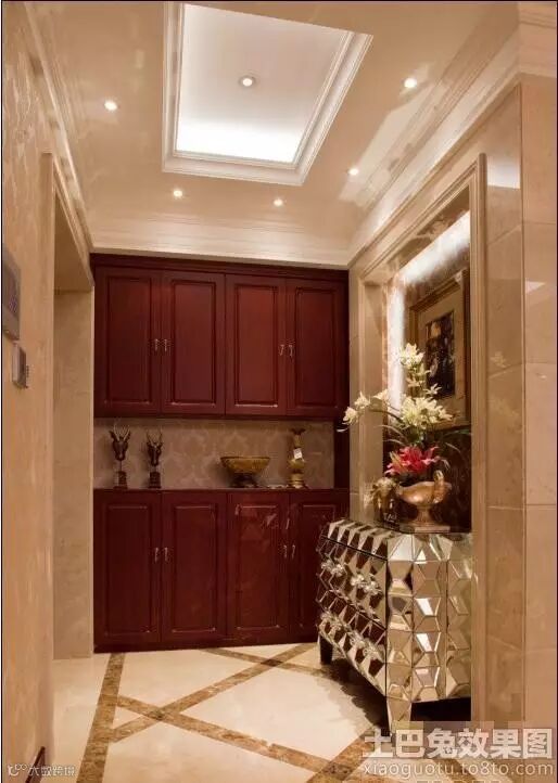 2.家庭成果/品味的展示位设置。玄关是一个家的主要出入口,左右着客人对这个家的第一印象。客用出入口相当于一个展示通道,在这里可设置展示用的博古架/多宝阁,其中物品都强烈着彰显着主人的品味。