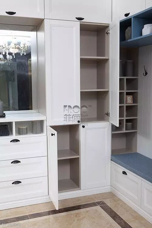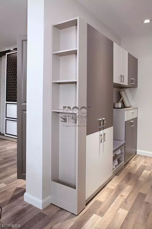>>>>最佳收纳设计方案是三种设计有效结合的设计。适当搭配坐凳柜、仪容镜、多规格隔板柜展示柜,最大程度贴近“完美玄关”需求。