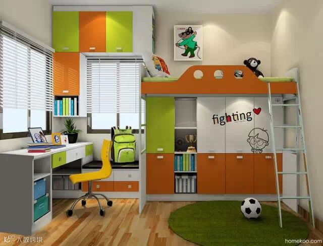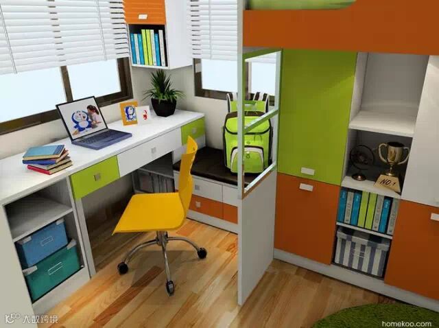 家具全部靠墙,直角布局的家具组合,最大程度释放空间,给孩子畅快玩耍。