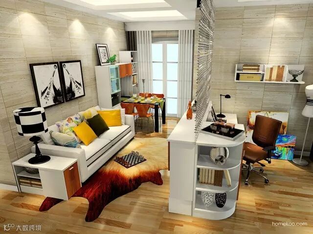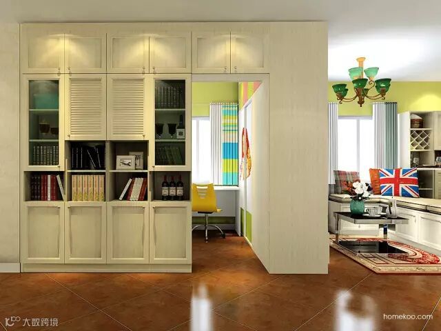 超级双重隔断,如果家里客厅确实太大,可以使用这种双重隔断,将整个空间一分为三休闲书房餐厅一个不缺。