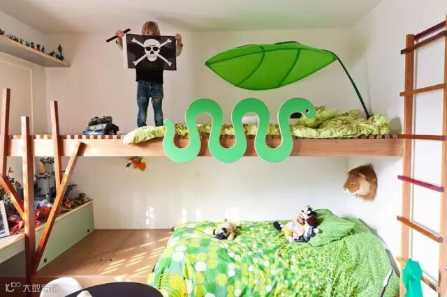 ▲ 房间用绿色单品做点缀,儿童房也可以生机勃勃。