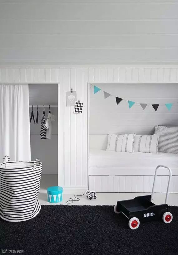 ▲ 高级灰配白色衣柜门,好品味从小培养起来。