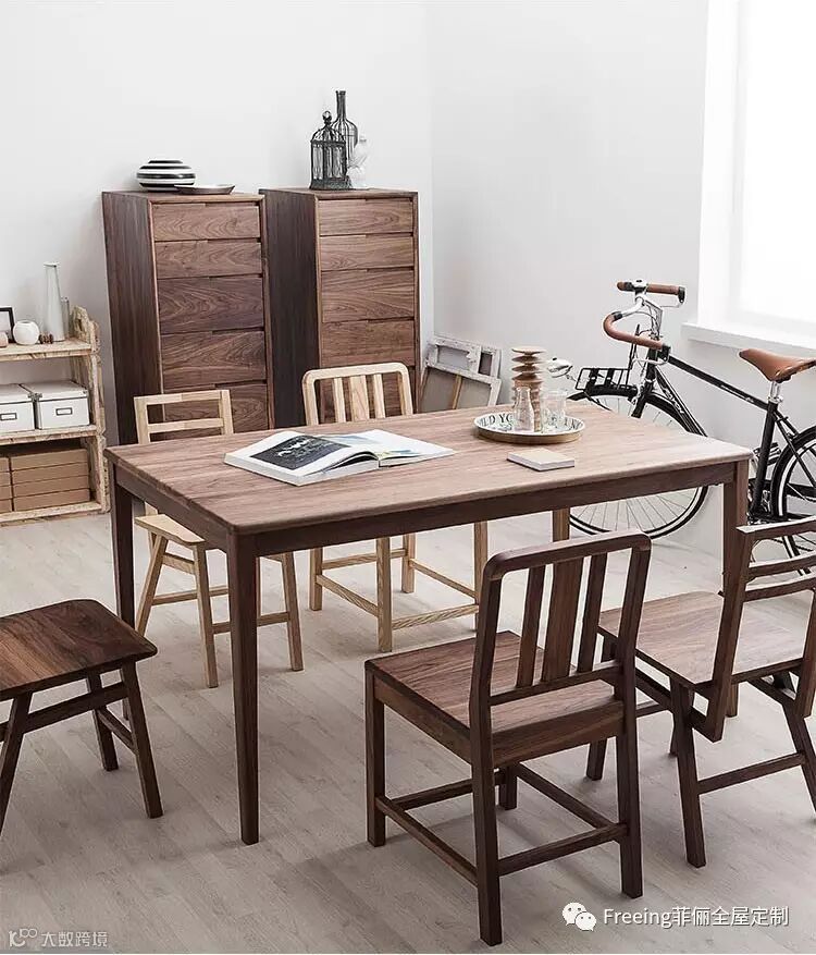 新中式仍强调“木”元素,却更“年轻”。配几把造型不一但风格统一的椅子,反而灵动。即使人不在,椅子之间也像是通过气流在“对话”。