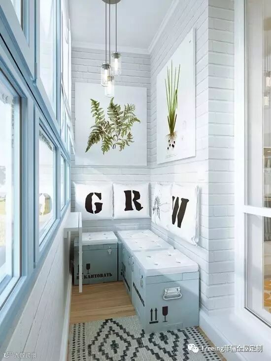阳台和卧室则通过巧妙设计来升级收纳空间:储物凳、可折叠短桌和多层置物架。
