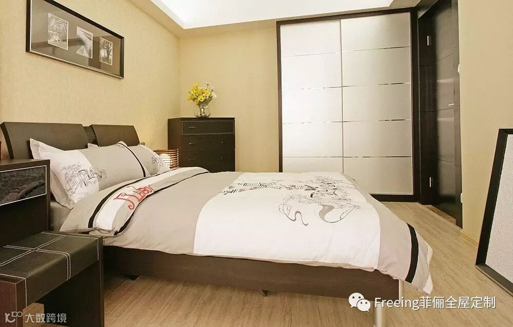浅色木地板和浅金墙纸呼应,深色家具又和暖白柜门相互映衬,让空间拥有“点亮心情”和“安抚人心”的双面力量。让这个工作强度极大的妈妈在进入这个空间的同时被雅致和贴心感染,安下心好好休息。