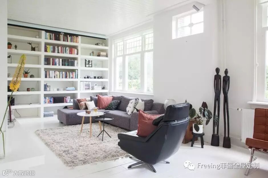 女主人喜欢复古和现代结合的设计,室内基本色选择了白色和灰色,又用棕色、黄色、橙色和红色为家居增添温暖色彩。