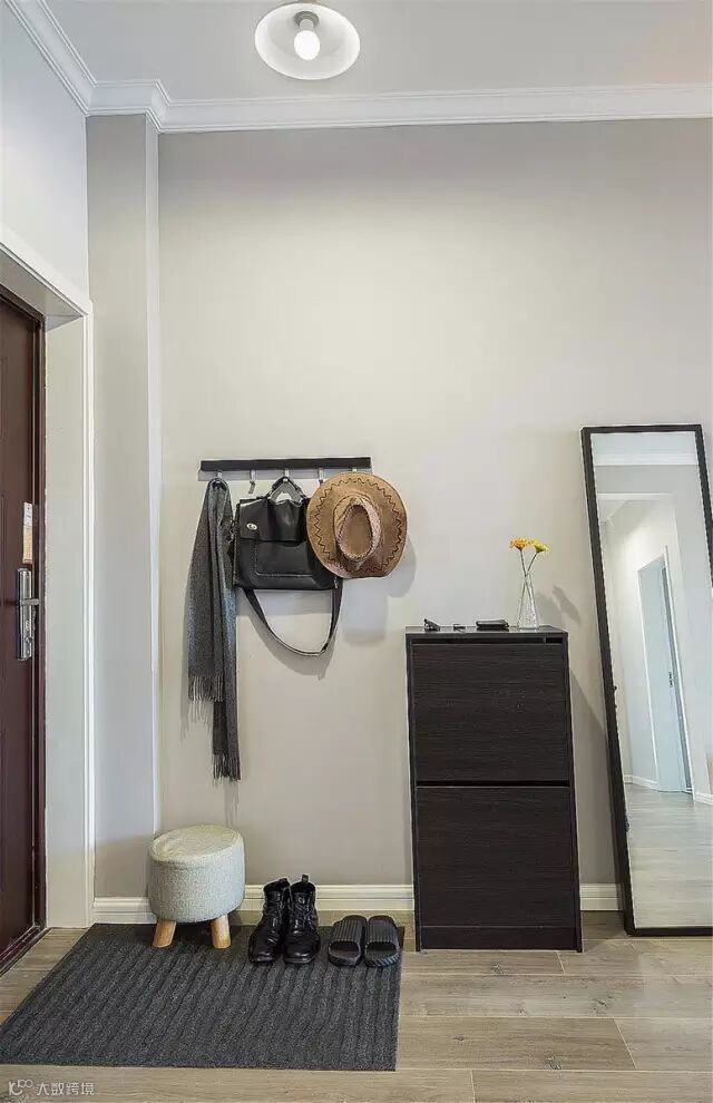 ▲入户简单的挂钩和斗柜搭配,彰显绅士风度的装修。