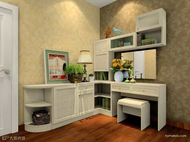 储物柜与梳妆台结合在一起,物品拿取方便,实用性高!