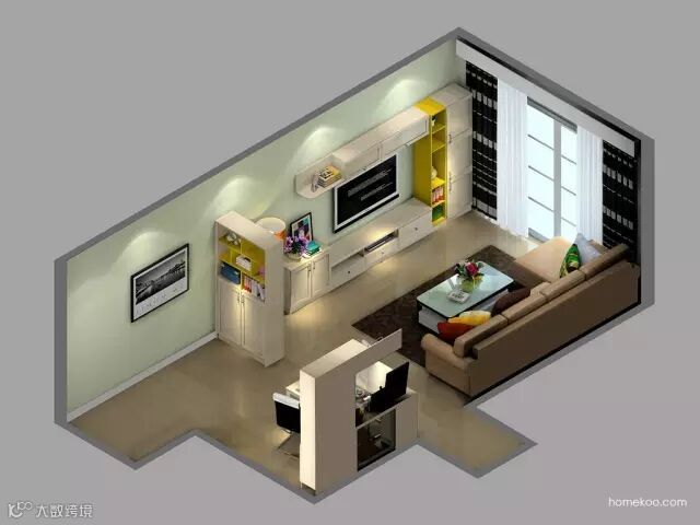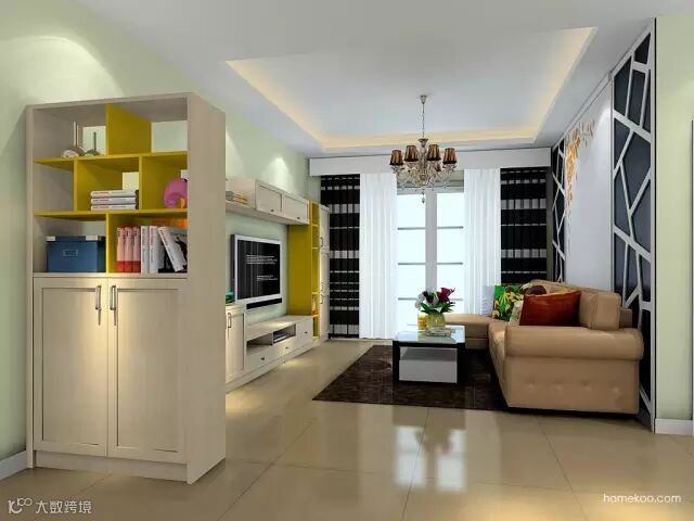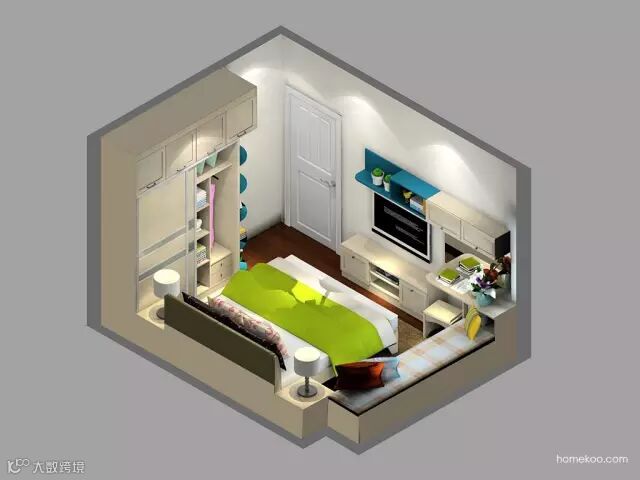 1、家装风格以现代简约为主,过多的装饰会使窄小的空间显得更加杂乱;配色柔和明亮,视觉上有空间延伸效果。