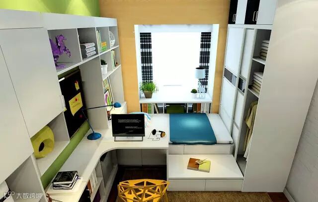 适合面积非常小的户型,将衣柜置入榻榻米床一侧,最大限度利用了房间面积,为卧室其他功能区腾出面积。同时榻榻米床强大的收纳功能与衣柜相结合更能集中规划、分区,让收纳事半功倍。