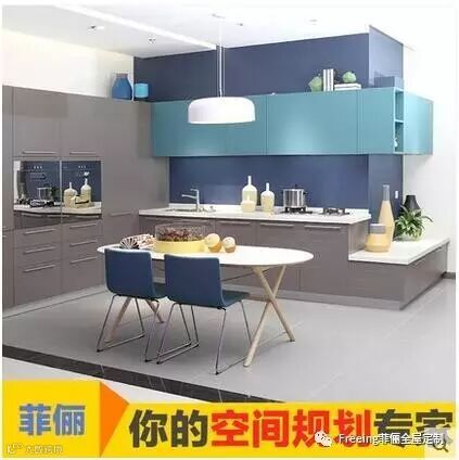 蓝色系多种柜体和门板可选,让厨房轻松融入公共空间