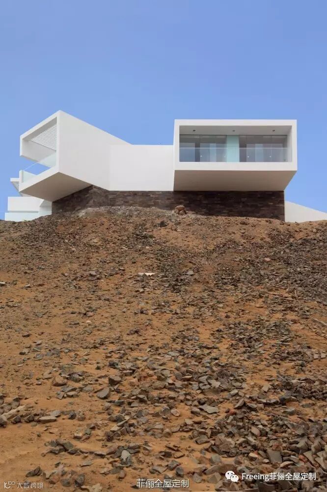 这栋私人海滨别墅位于秘鲁利马LasLomas del Mar海滩。建筑所在地由岩石和沙土形成的小山较多,客户要求要充分利用土地,还要尽可能看到最美海景。