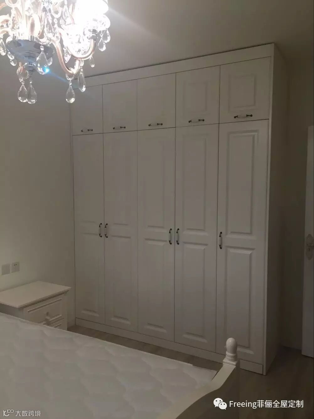 主卧女主人采用的简欧风格,这种定制衣柜到顶设计自然,能合理利用卧室的顶部空间,增加了储物功能,过季的衣物和备用的被褥可以上在上面,而且还避免了灰尘的堆积。